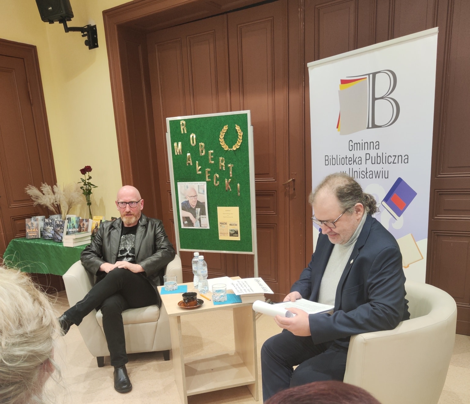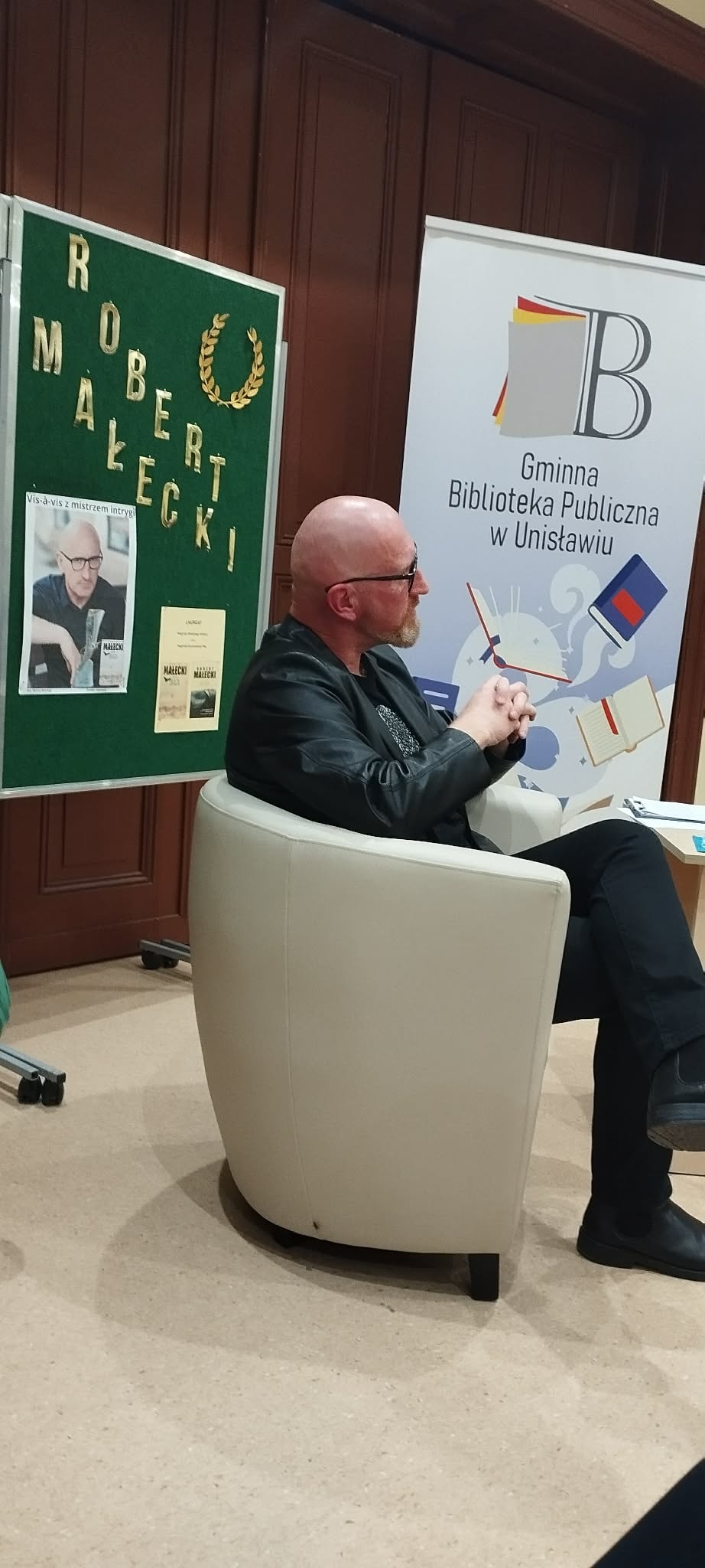 Biblioteka gościła Roberta Małeckiego, który w niezwykle interesujący sposób opowiadał o kulisach powstawania powieści.