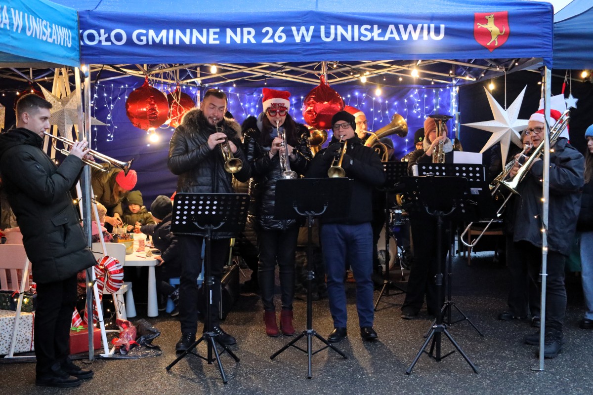 Z kolei pod choinką o godzinie 16:00 na fotelu zasiadł Święty Mikołaj, który wcześniej w asyście druhów z OSP Unisław uczestniczył w przejeździe ulicami Unisławia, pozdrawiając wszystkich mieszkańców. Po przybyciu specjalnego gościa rozbłysnęło świąteczne drzewko, zapalono także iluminacje świetlne. Nie zabrakło wspólnych zdjęć, występów tanecznych grupy KIDS i DANCE, orkiestry dętej z GOK-u, fotobudki, mini wesołego miasteczka i kreatywnego kącika dla najmłodszych, w którym można było stworzyć ozdoby świąteczne i napisać list do św. Mikołaja. To było wyjątkowe popołudnie.
