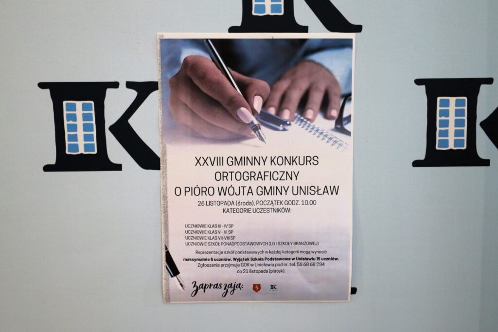 Środa, 26 listopada była pełna ortograficznych zmagań. W murach Gminnego Ośrodka Kultury w Unisławiu odbył się XXVIII Konkurs Ortograficzny o Pióro Wójta Gminy Unisław, w którym wzięło udział blisko 60 uczniów.  Nagrody w poszczególnych kategoriach otrzymali: