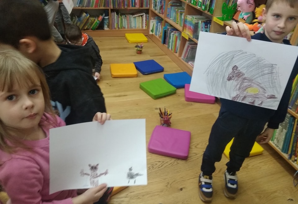 Grupy przedszkolne ,,Bączki” i ,,Zuchy” zdołały uciszyć hałaśliwe zwierzątka, a nawet udało im się pomóc niedźwiedziowi.
