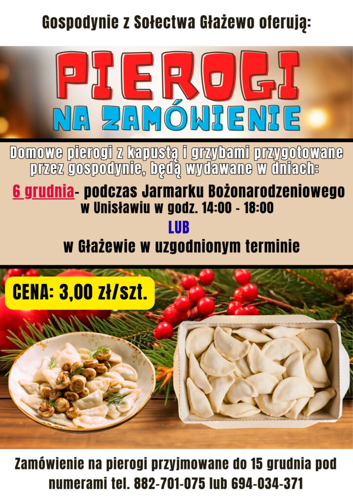 Gospodynie z Sołectwa Głażewo oferują domowe pierogi z kapustą i grzybami/p...