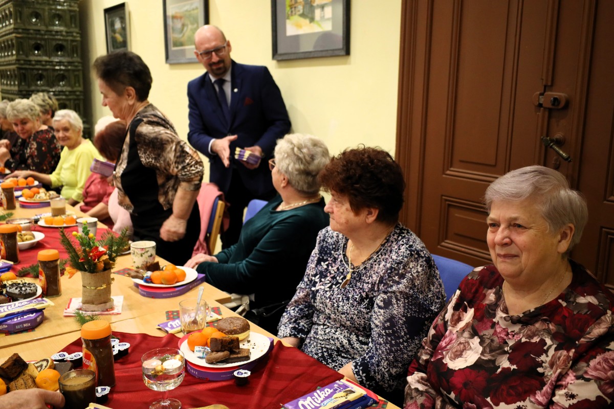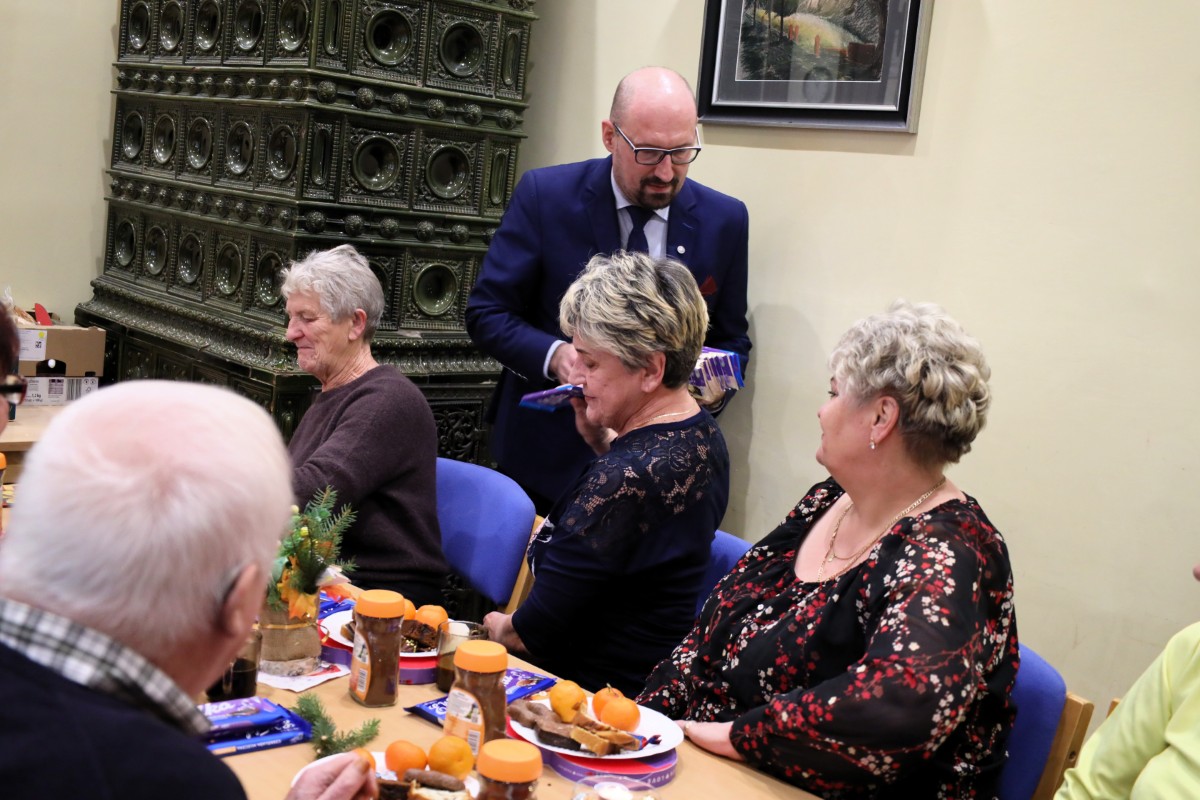 Igor Kornowicz zagrał znane kolędy, zachęcając seniorów do wspólnych śpiewów. To spotkanie nie tylko umiliło czas, ale także stało się okazją do rozmów, wspólnego cieszenia się towarzystwem przy gorących napojach oraz poczęstunku.