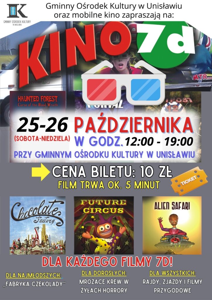 Gminny Ośrodek Kultury w Unisławiu wraz z mobilnym kinem zapraszają na seanse...
