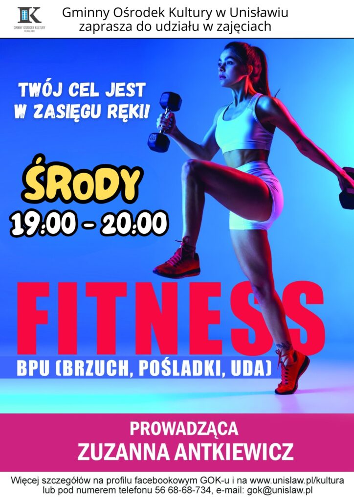 Gminny Ośrodek Kultury w Unisławiu wraz z prowadzącą Zuzanną Antkiewicz – instruktorem fitness serdecznie zapraszają na zajęcia fitness BPU, które będą odbywały się cyklicznie w środy w godz. 19:00 – 20:00.