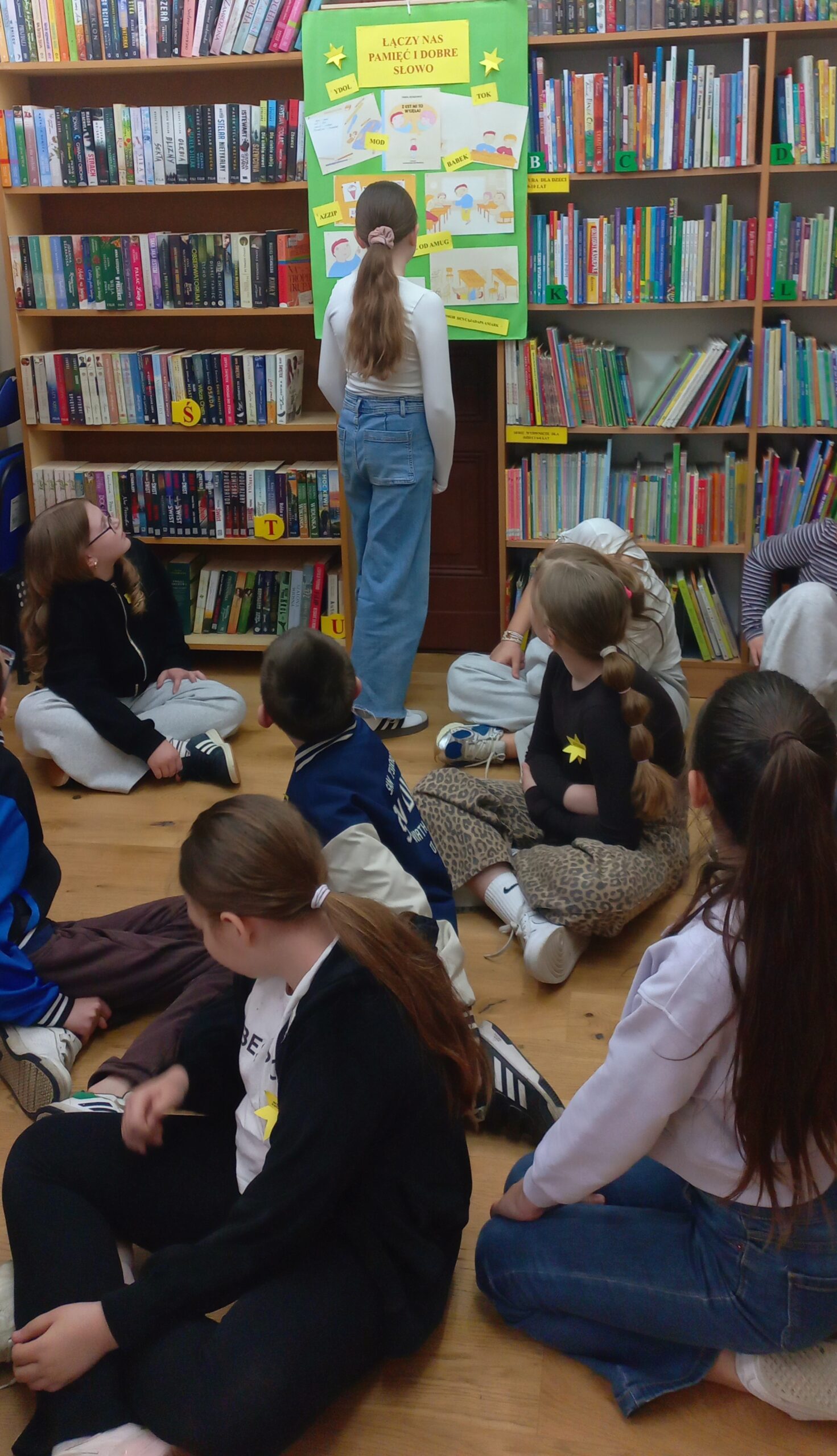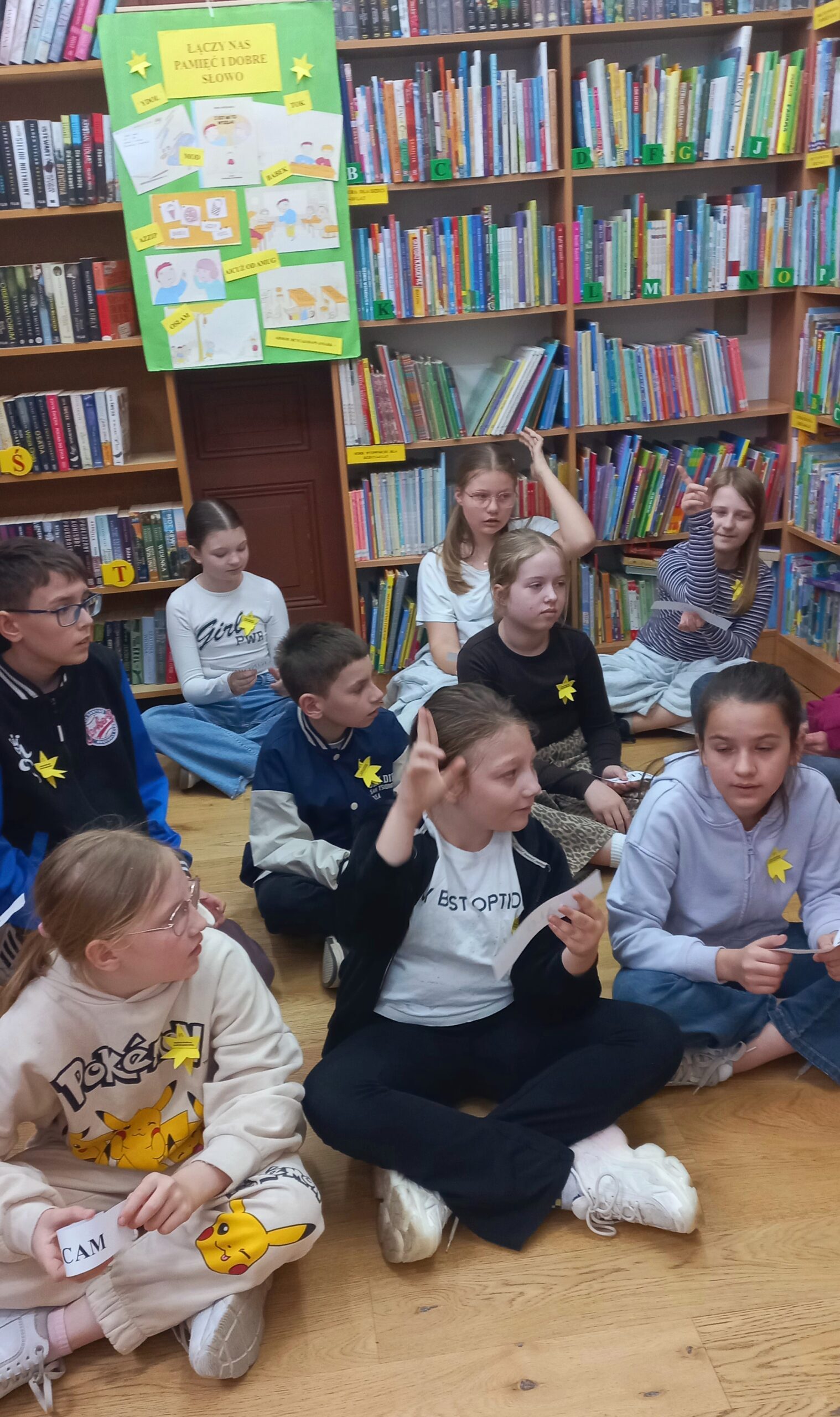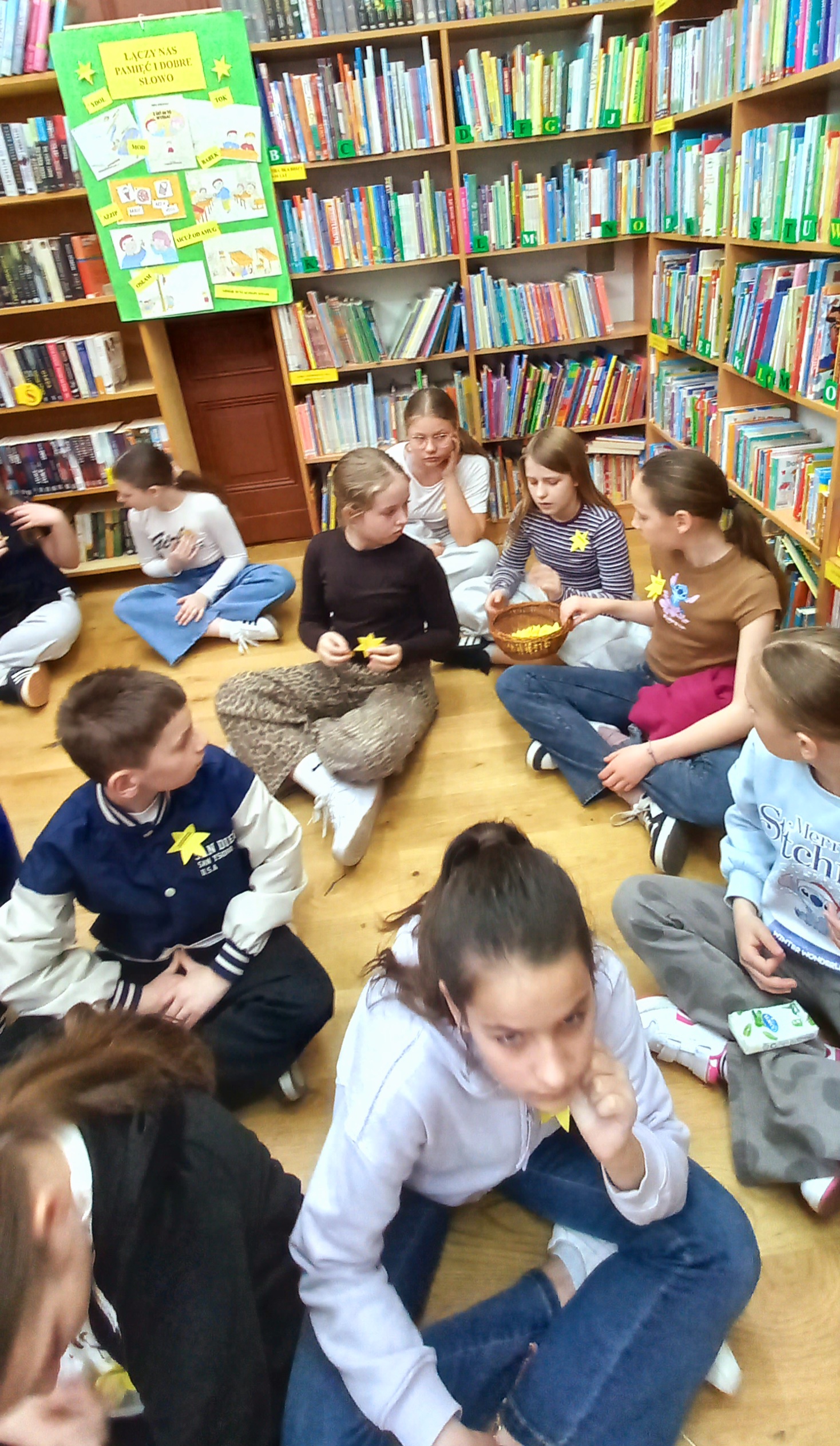 Podczas zajęć dzieci dowiedziały się, czym jest Akcja „Żonkile”, dlaczego jej symbolem jest żółty żonkil, kim był Marek Edelman. Rozmowy dotyczyły także historii getta i znaczeniu pamięci o tamtych wydarzeniach. Uczestnicy spotkania wysłuchali opowiadania pt.: „Z ust mi to wyjęła!” Pawła Beręsowicza które stało się inspiracją do rozmów o sile słów, życzliwości oraz o tym, że nie można milczeć, kiedy komuś dzieje się krzywda. Nie zabrakło również kreatywnych aktywności związanych z przeczytanym opowiadaniem – uczniowie czytali swoje imiona wspak, czyli od końca do początku, co wywołało wiele uśmiechu i radości.