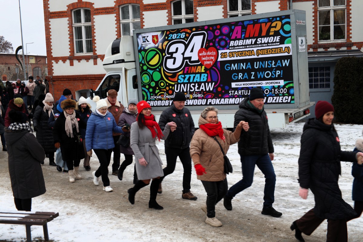 W dzień Wielkiego Finału WOŚP, gmina Unisław zmierzyła się z gminą Łubianka w tanecznym pojedynku. Bicie rekordu w tańczeniu poloneza, w którym pod uwagę brano ilość tańczących par okazało się sukcesem dla społeczności z terenu gm. Unisław. W tym roku w unisławskim parku zatańczyły 44 pary, natomiast w Łubiance 34 pary. Energia, uśmiechy i wspólna zabawa stworzyły niezapomnianą atmosferę, która idealnie wpisała się w ducha Wielkiej Orkiestry Świątecznej Pomocy.